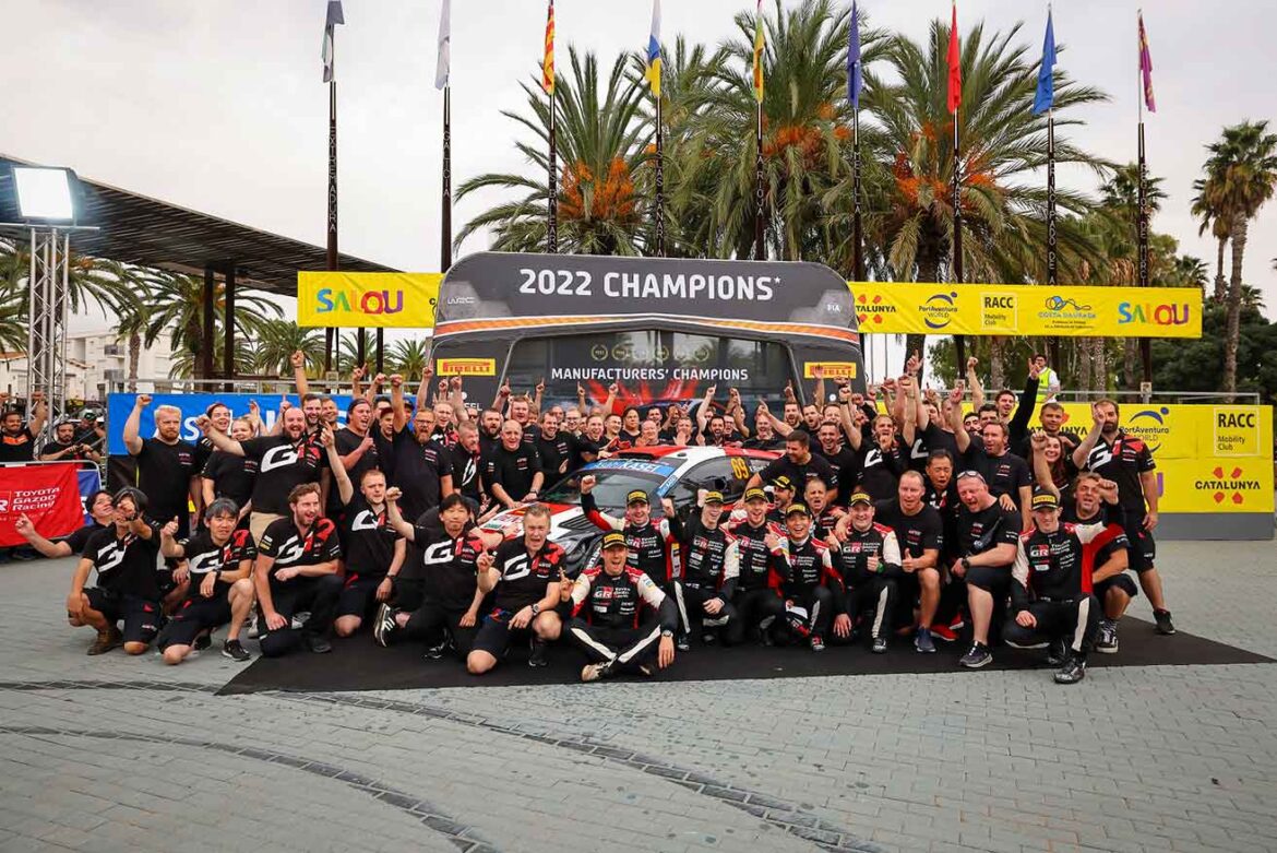 The TOYOTA GAZOO Racing (TGR) World Rally Team (WRT) completed an FIA World Rally Championship treble in style recently as Toyota clinched the 2022 manufacturers’ title with a superb win at Rally de España for Sébastien Ogier in the No. 1 Toyota GR YARIS Rally1 Hybrid Electric Vehicle. The manufacturers’ championship success follows the drivers’ and co-drivers’ titles secured by Kalle Rovanperä and Jonne Halttunen during the previous rally in New Zealand.